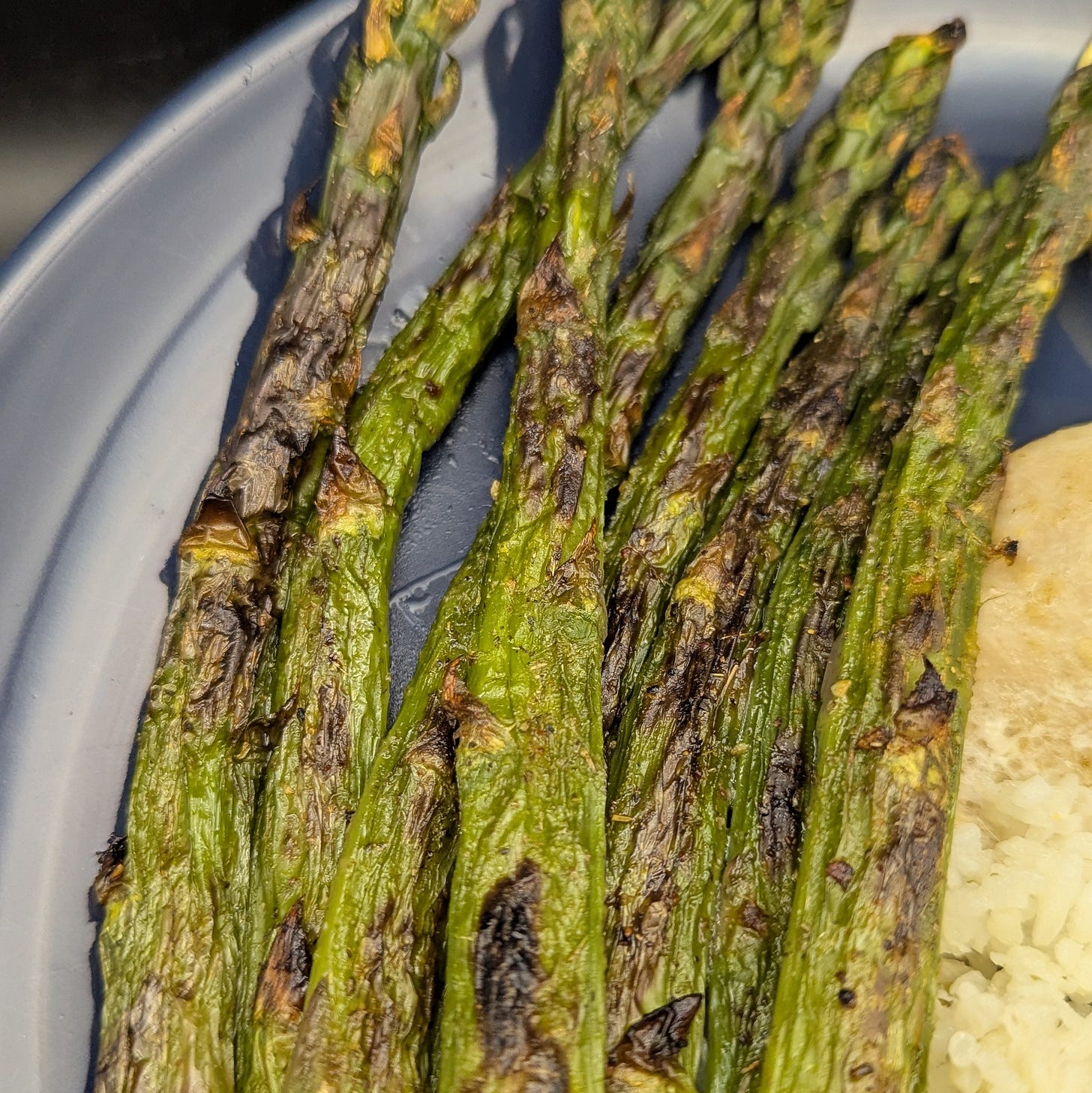 Broil the asparagus for 3-5 minutes until the asparagus starts to develop a light char